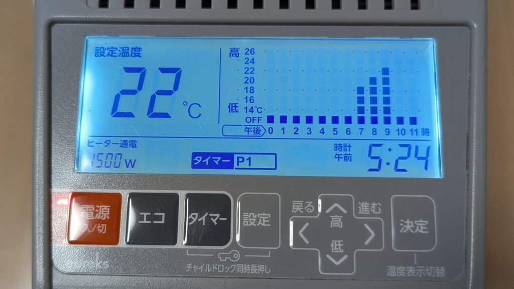 自分の場合は以下のようにエアコンと併用してオイルヒーターを使い過ぎないようにしています。
