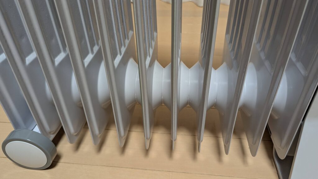 オイルヒーターは、フィンの中に入っているオイルを温めて対流させることで熱を伝えて、フィンを温めて放熱する暖房器具です。